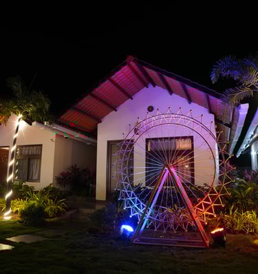 Relax, play, and celebrate surrounded by lush green fields and vibrant village charm.
